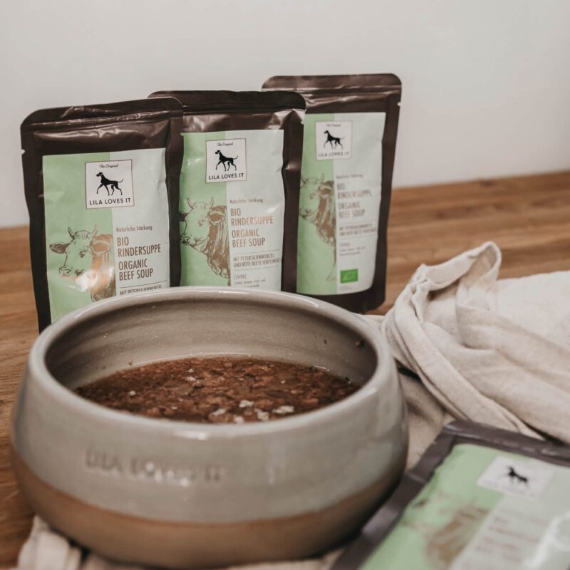 Die herzhafte BIO-RINDERSUPPE erleichtert die Flüssigkeitsaufnahme bei Hunden, die wenig trinken, und spendet neue Energie – ideal als wohltuende Schonkost oder als kraftvoller Begleiter für aktive Vierbeiner. Ob pur, als Topping über dem Futter oder im Wassernapf: Sie ist immer ein Genuss.