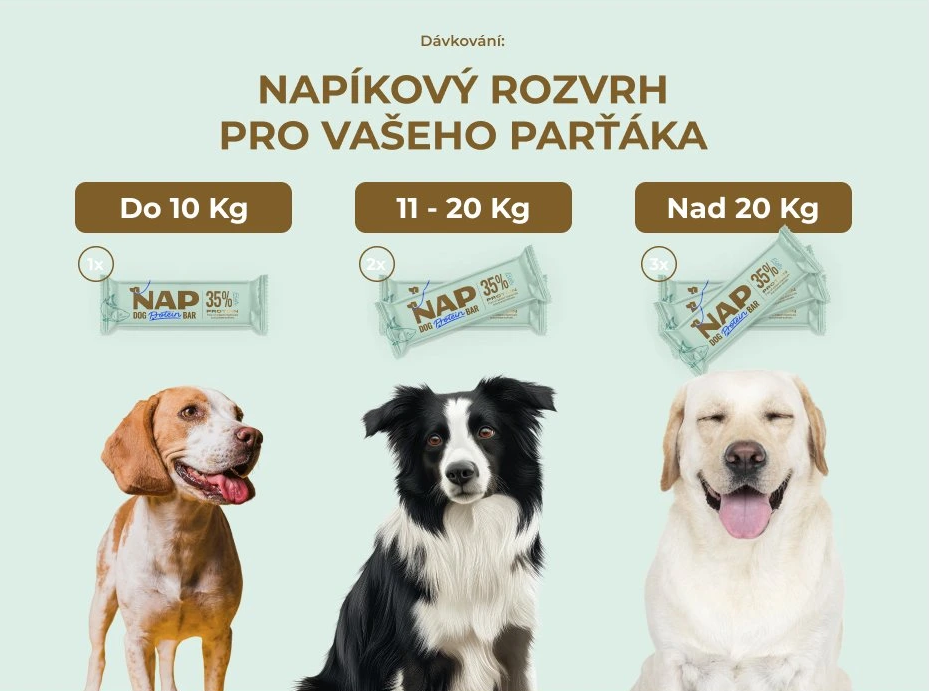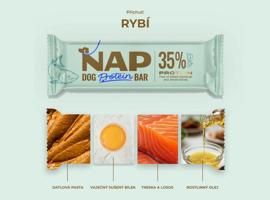 NAP DOG PROTEIN BAR – ein nahrhafter, praktischer Riegel, der speziell für Hunde entwickelt wurde. Er enthält einen hohen Anteil hochwertiger Proteine, Vitamine und Mineralstoffe – ohne unnötige Konservierungsstoffe oder Stabilisatoren. 100 % natürliche Zutaten. Geeignet für aktive Hunde, die nach dem Sport Energie auftanken müssen, ebenso wie für Familienhunde als gesunder Snack auf Spaziergängen oder Ausflügen.