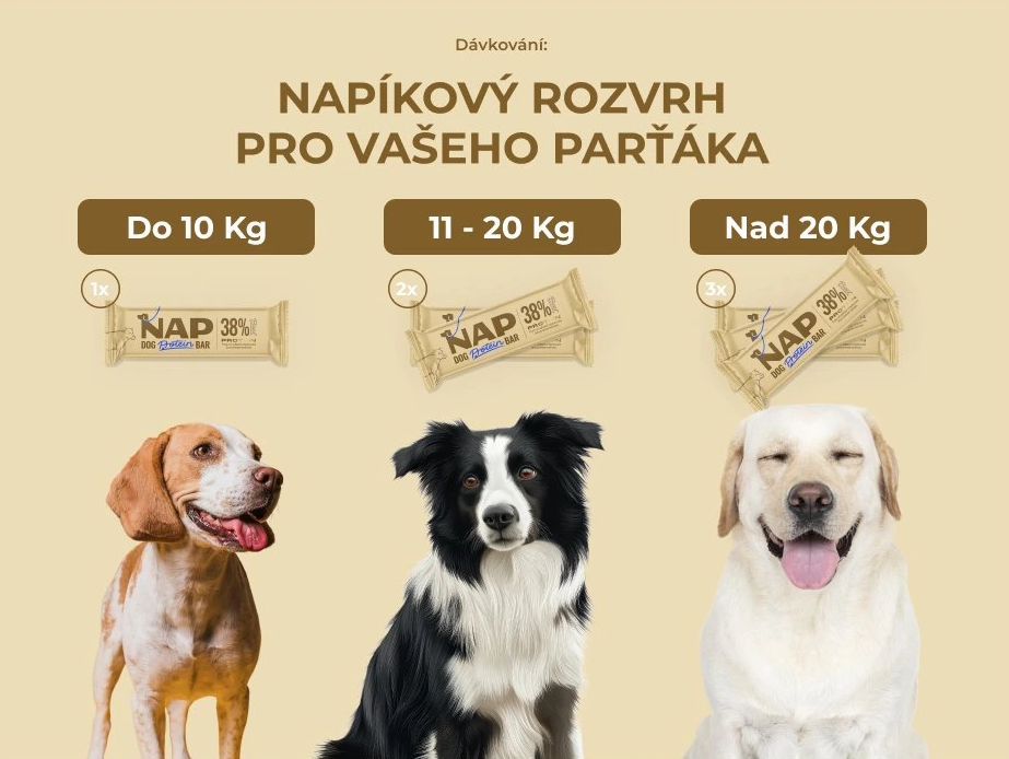 NAP DOG PROTEIN BAR – ein nahrhafter, praktischer Riegel, der speziell für Hunde entwickelt wurde. Er enthält einen hohen Anteil hochwertiger Proteine, Vitamine und Mineralstoffe – ohne unnötige Konservierungsstoffe oder Stabilisatoren. 100 % natürliche Zutaten. Geeignet für aktive Hunde, die nach dem Sport Energie auftanken müssen, ebenso wie für Familienhunde als gesunder Snack auf Spaziergängen oder Ausflügen.