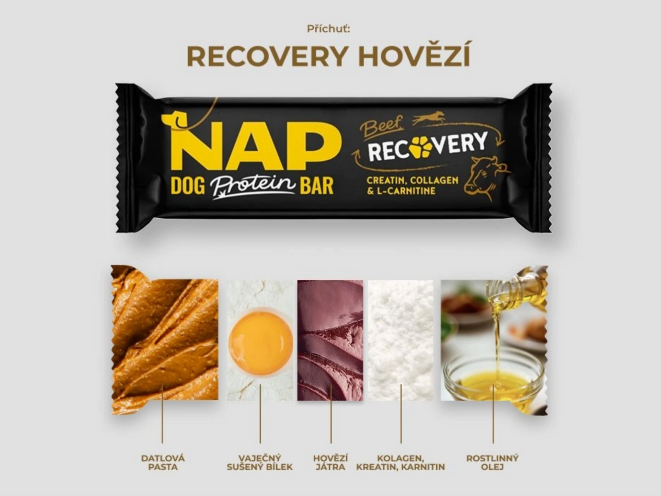 NAP Dog Protein Bar RECOVERY – Rind 50 g Gönne deinem Hund maximale Unterstützung nach intensiver Belastung. Dieser spezielle Proteinriegel ist für die schnelle Muskelregeneration, das Auffüllen der Energie und die Unterstützung der Gelenke konzipiert.