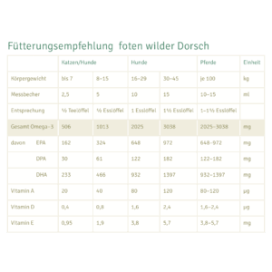 Wenn du Lachsöl für Pferde, Hunde oder Katzen kaufen möchten, solltest du dich für das Dorschöl von foten entscheiden. Der Grund: ein ideales Fischöl kommt aus Wildfang und ist ein fettreicher Fisch, der in einem kalten Gewässer schwimmt. Teste also statt Lachsöl einfach mal Dorschöl, das speziell für foten hergestellt wird. Es ist natürlich und biologisch, wird aufwendig gereinigt und zusätzlich von unabhängigen Laboren getestet. Somit ist Dorschöl eine sehr gute Alternative zu Lachsöl für Hund, Katze und Pferd.